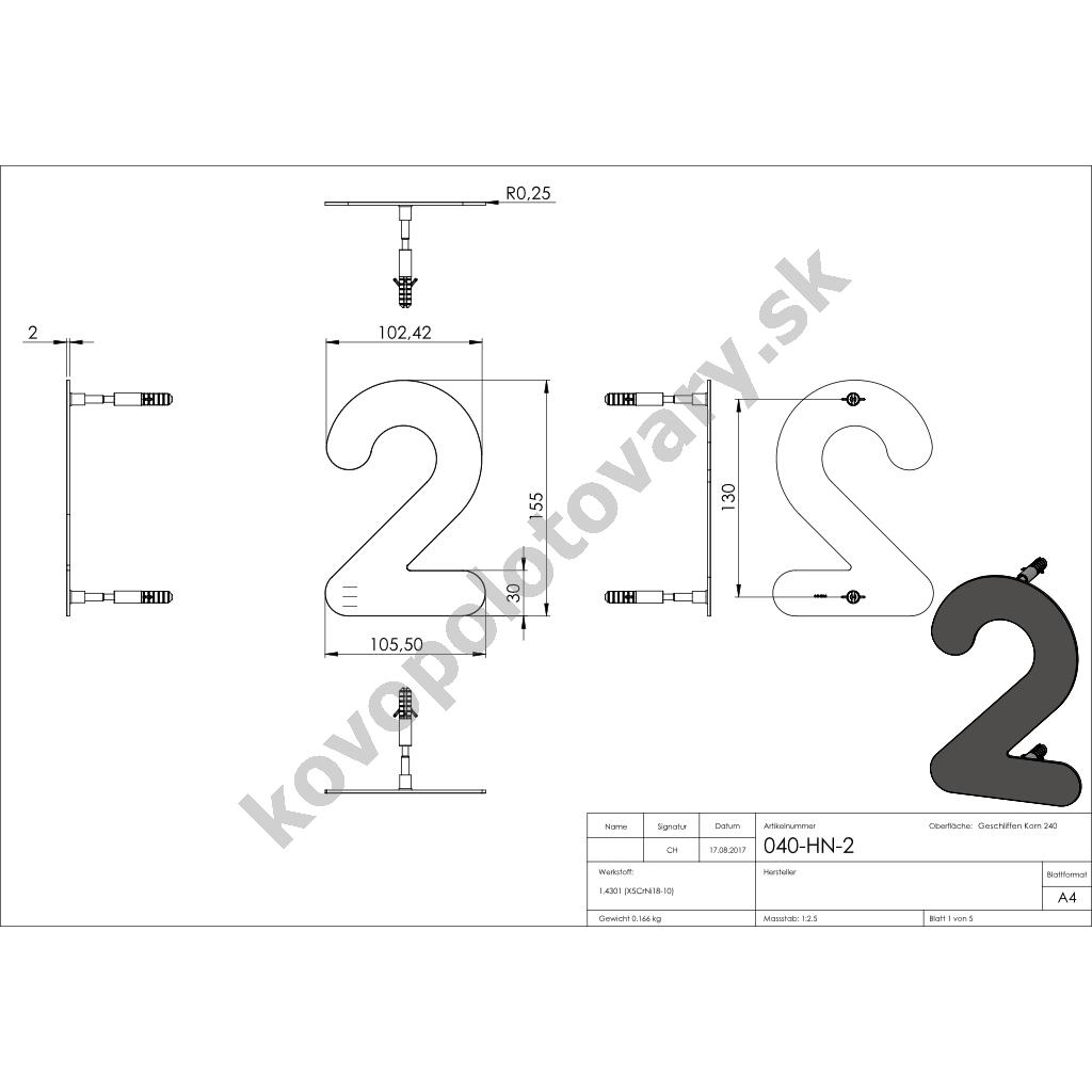 Barva: hnědá; Hloubka: 10; Materiál: hliník; Povrchová úprava: barveno; Symbol: 2; Šířka: 127; Výrobce: PSG; Výška: 190;