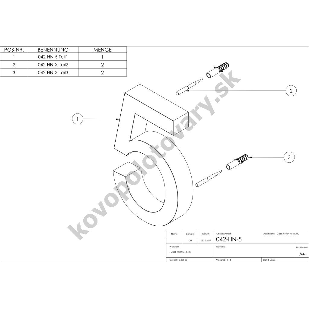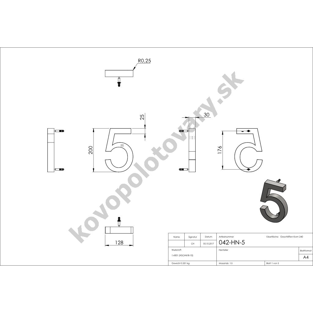Barva: hnědá; Hloubka: 10; Materiál: hliník; Povrchová úprava: barveno; Symbol: 5; Šířka: 127; Výrobce: PSG; Výška: 190;