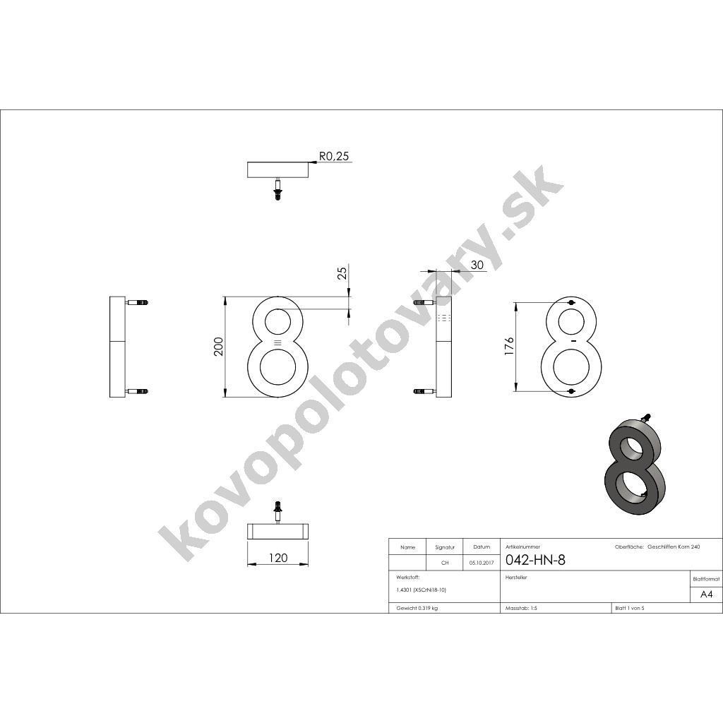 Barva: černá; Hloubka: 10; Materiál: hliník; Povrchová úprava: barveno; Symbol: 8; Šířka: 127; Výrobce: PSG; Výška: 190;