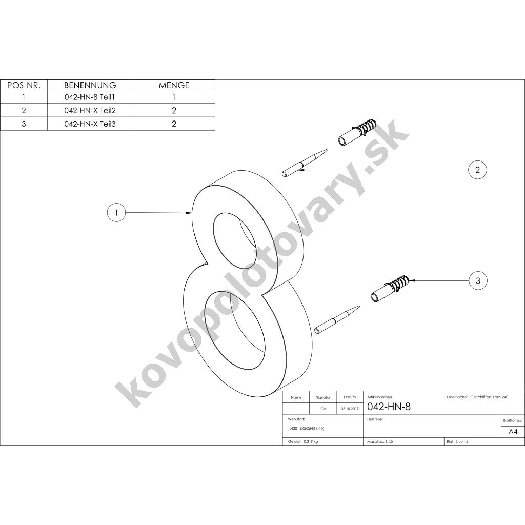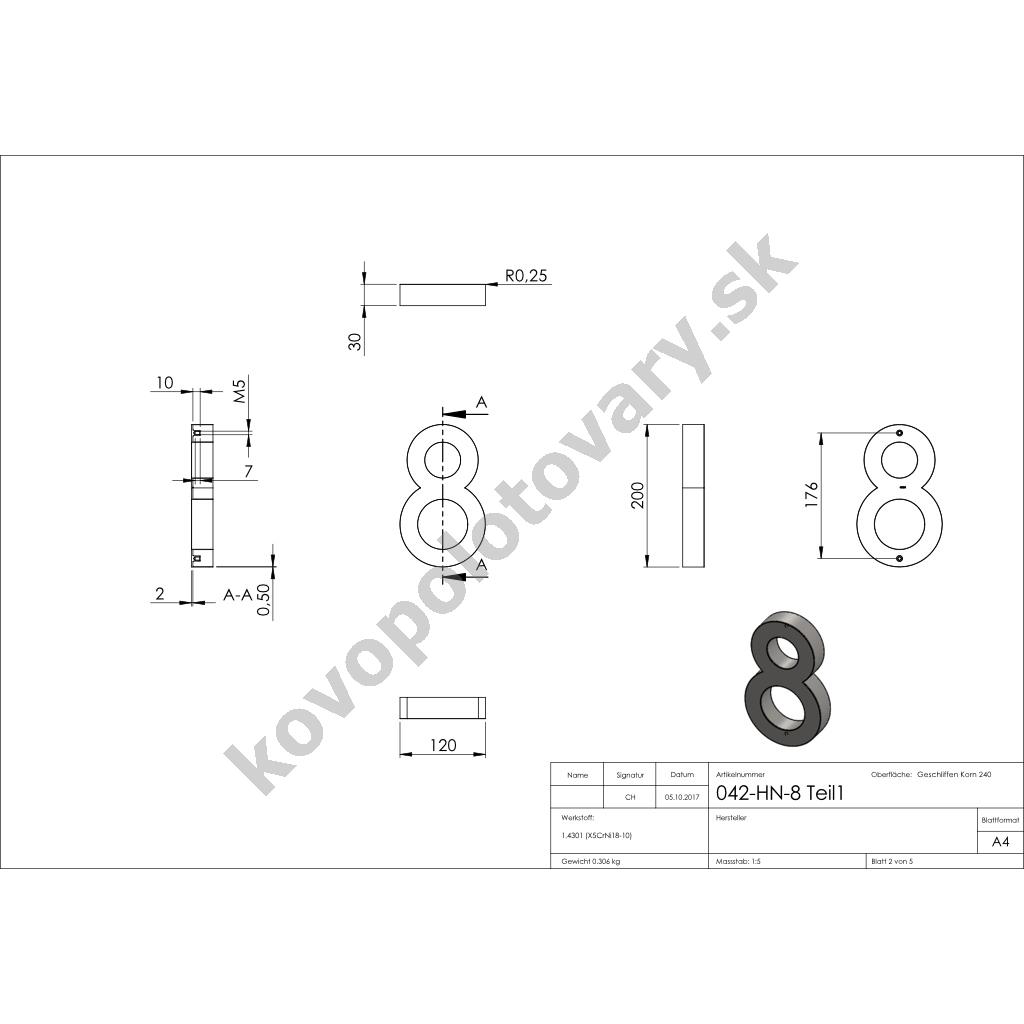 Barva: hnědá; Hloubka: 10; Materiál: hliník; Povrchová úprava: barveno; Symbol: 8; Šířka: 127; Výrobce: PSG; Výška: 190;
