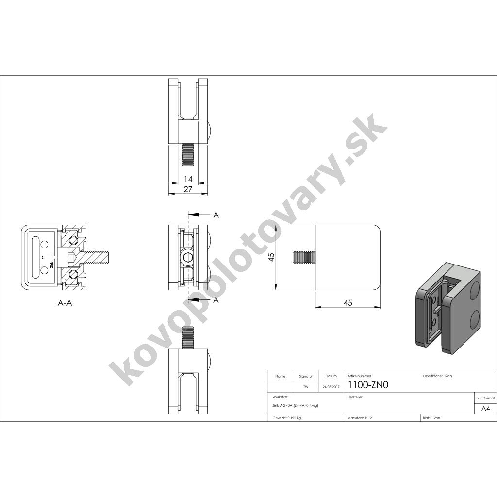 Hloubka: 26; Materiál: ZAMAK; Model: 31; Povrchová úprava: bez úpravy; Pro tloušťku výplně: 1,5; 10; 10,76; 2; 3; 4; 6; 6,76; 8; 8,76; 9,52; Šířka: 45; Tvar držáku: hranatý; Typ závitu: M8; Uchycení: na rovinu; Výška: 45; Zajišťovací čep: volitelné; Zajišťovací podpěra: volitelné;