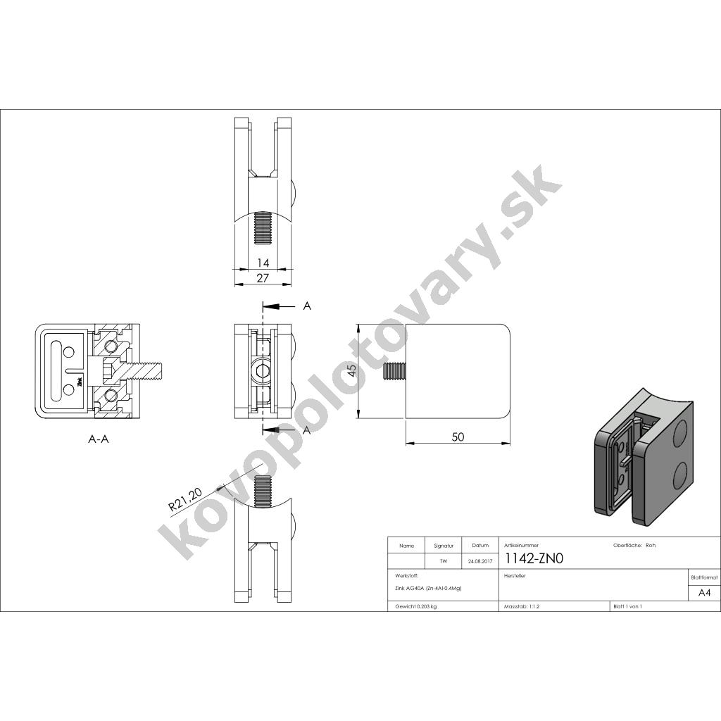 Hloubka: 26; Materiál: ZAMAK; Model: 31; Povrchová úprava: bez úpravy; Pro tloušťku výplně: 1,5; 10; 10,76; 2; 3; 4; 6; 6,76; 8; 8,76; 9,52; Šířka: 45; Tvar držáku: hranatý; Typ závitu: M8; Uchycení: na trubku pr. 42,4 mm; Výška: 45; Zajišťovací čep: volitelné; Zajišťovací podpěra: volitelné;
