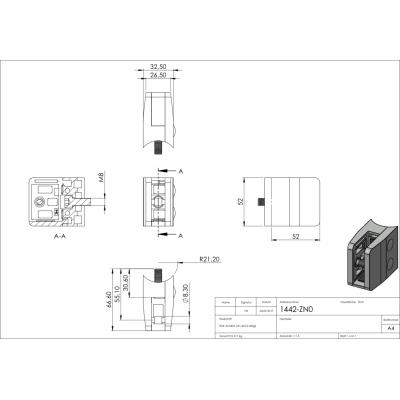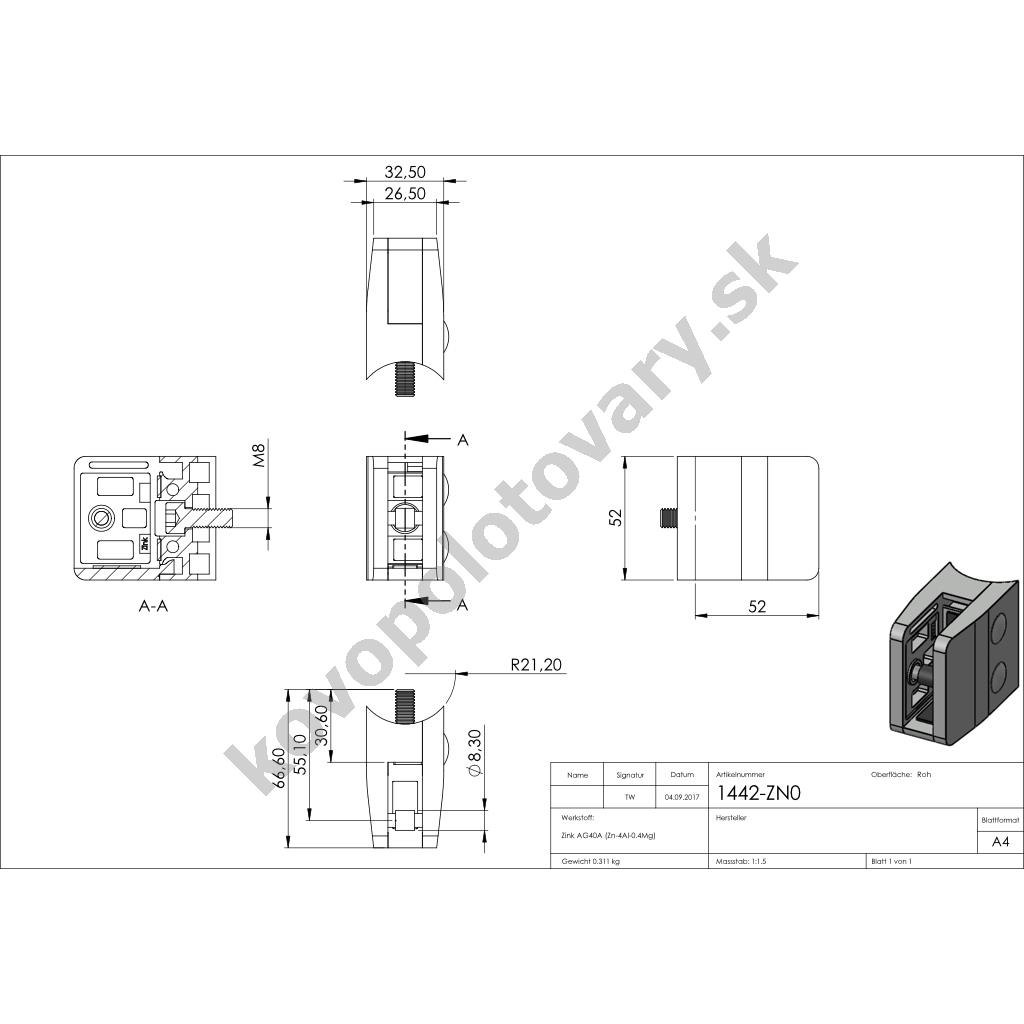 Hloubka: 32,5; Materiál: ZAMAK; Model: 34; Povrchová úprava: bez úpravy; Pro tloušťku výplně: 1,5; 10; 10,76; 11,52; 12; 12,76; 2; 3; 4; 8; 8,76; 9,52; Šířka: 52; Tvar držáku: hranatý; Typ závitu: M8; Uchycení: na trubku pr. 42,4 mm; Výška: 52; Zajišťovací čep: volitelné; Zajišťovací podpěra: volitelné;