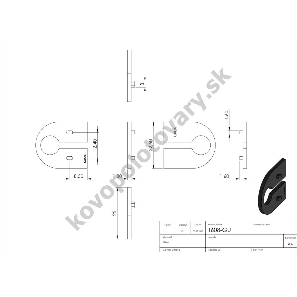 Barva: černá; Materiál: guma; Model: 16; Pro tloušťku výplně: 1,5;