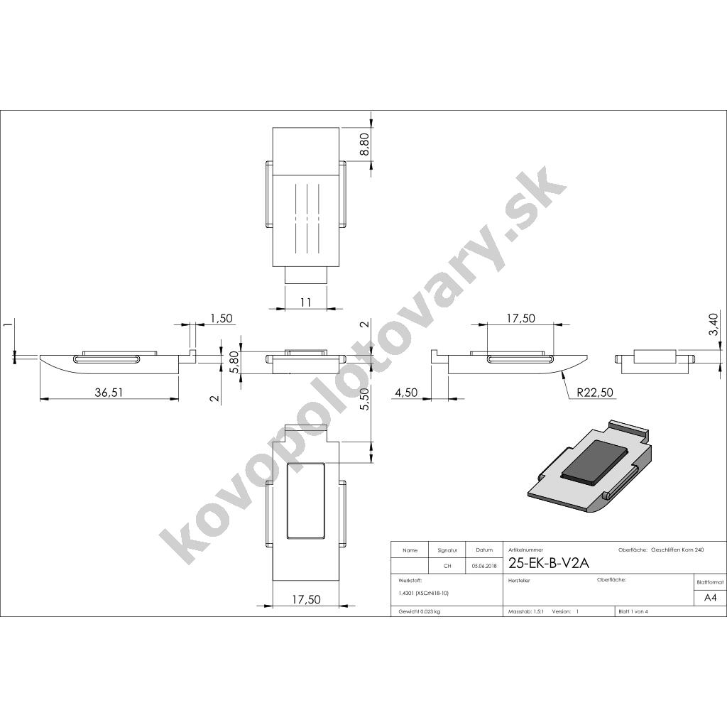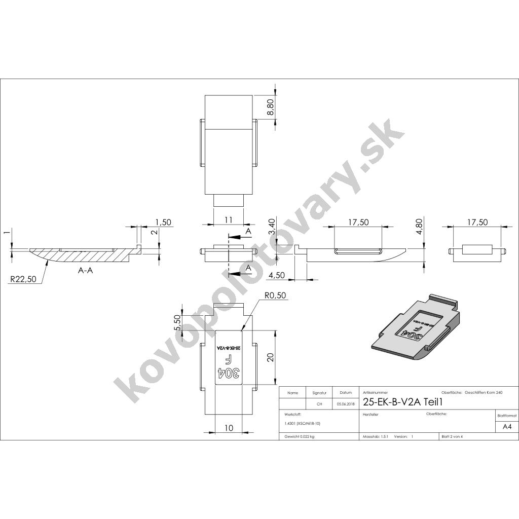 | Povrchová úprava | mat / brus K240 |