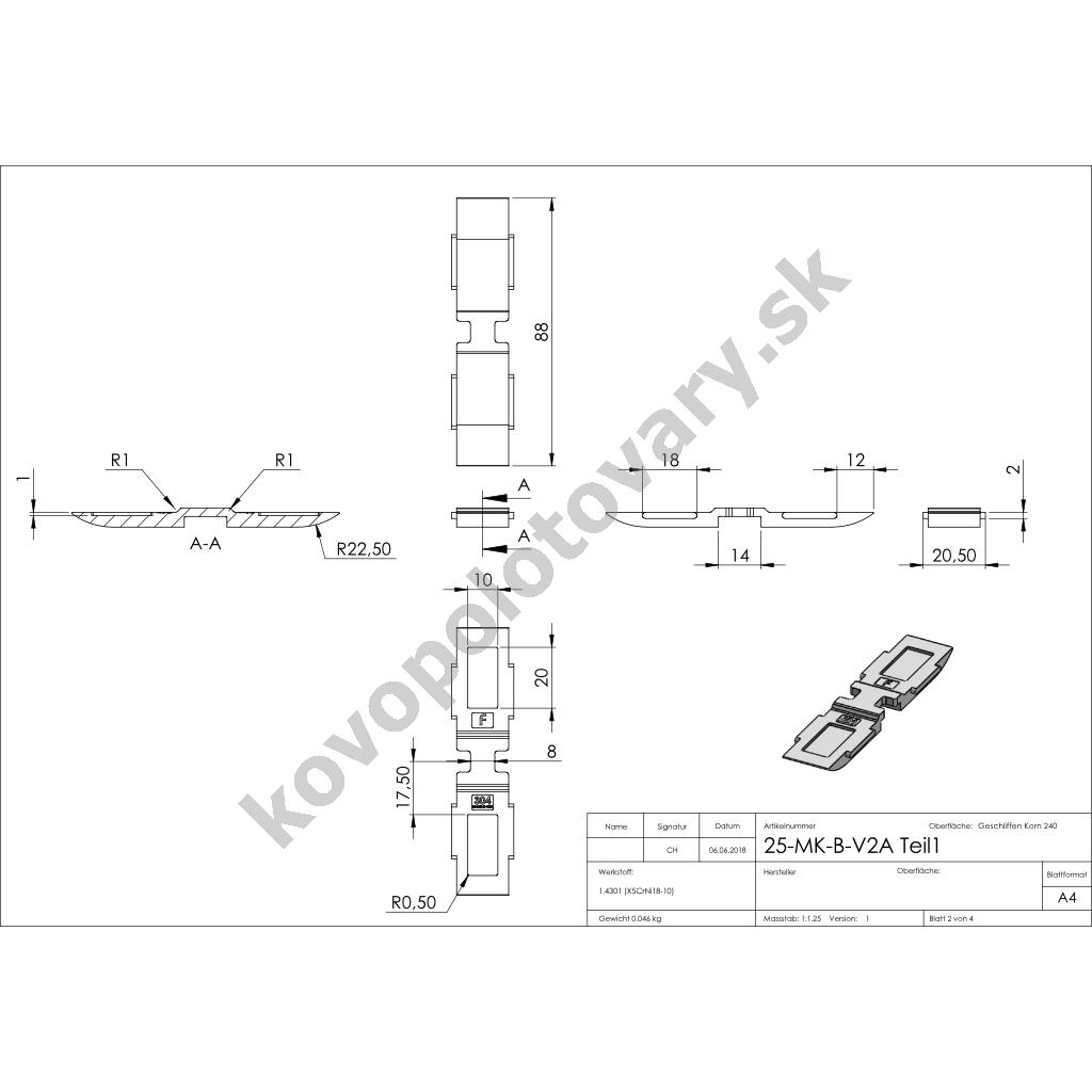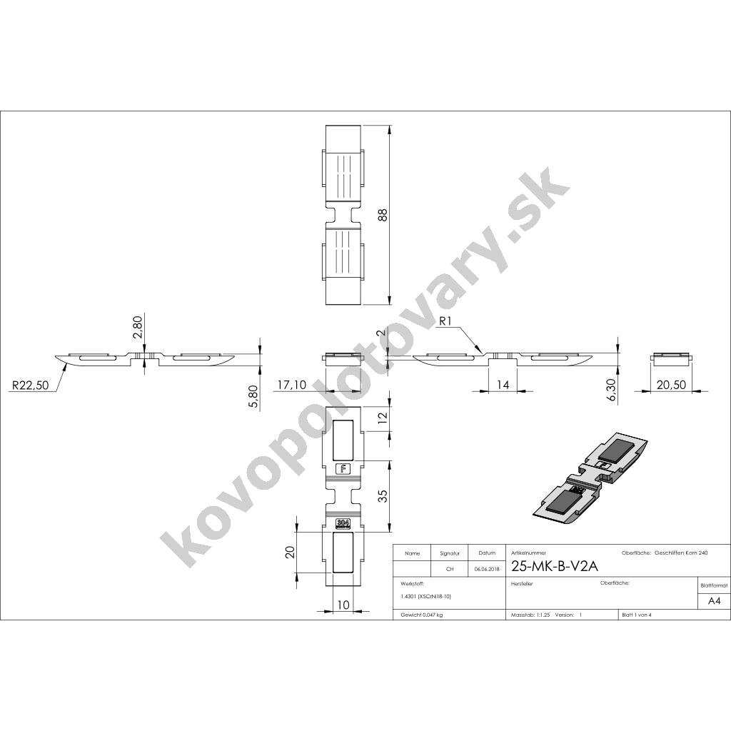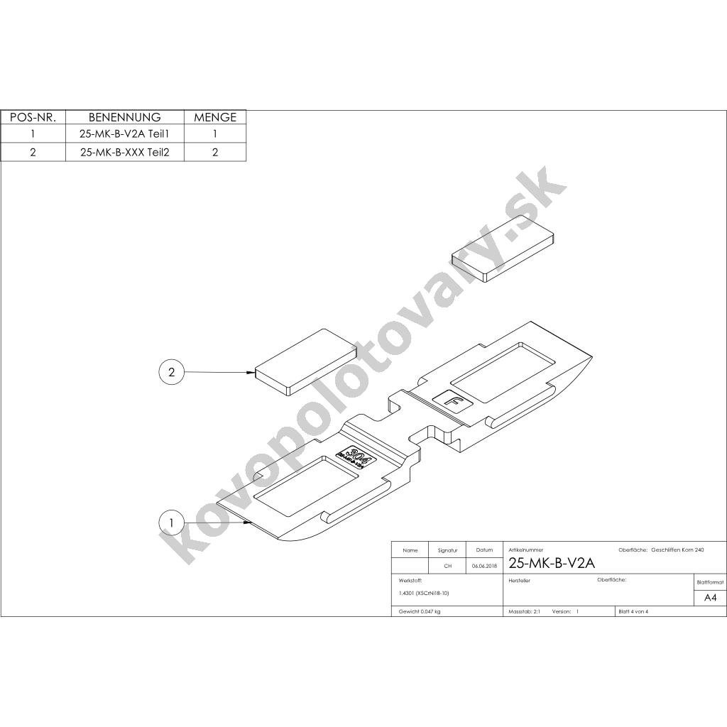 25-MK-V2A - nerezový držiak skla - model 25, dvojstranný, AISI 304 brus, pre nerezové zábradlie