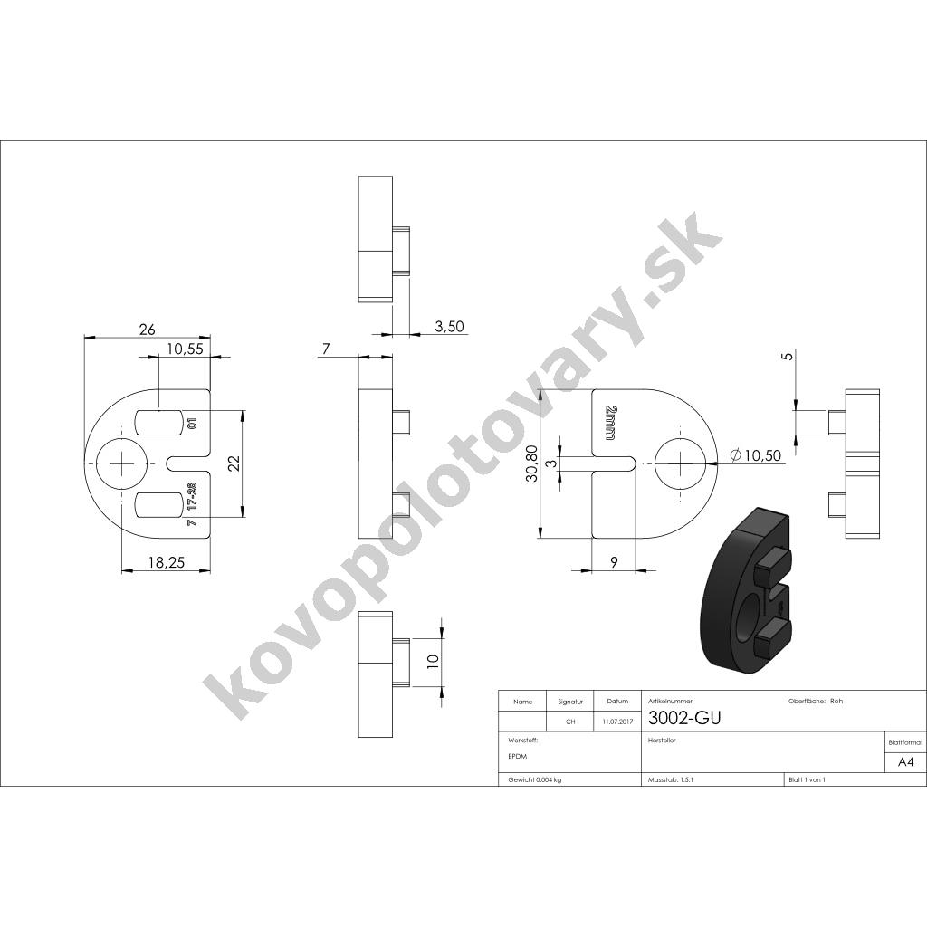 Barva: černá; Materiál: guma; Model: 30; Pro tloušťku výplně: 3;