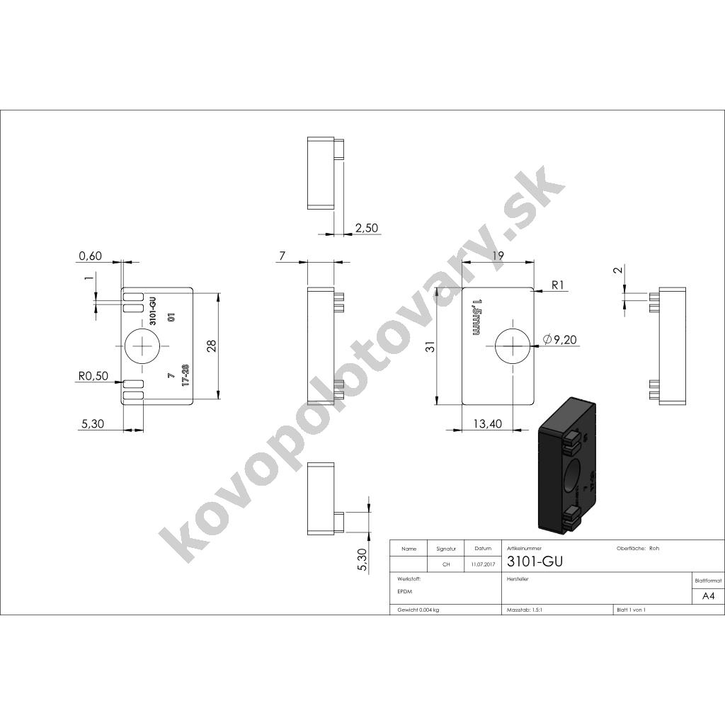 Barva: černá; Materiál: guma; Model: 31; Pro tloušťku výplně: 3;