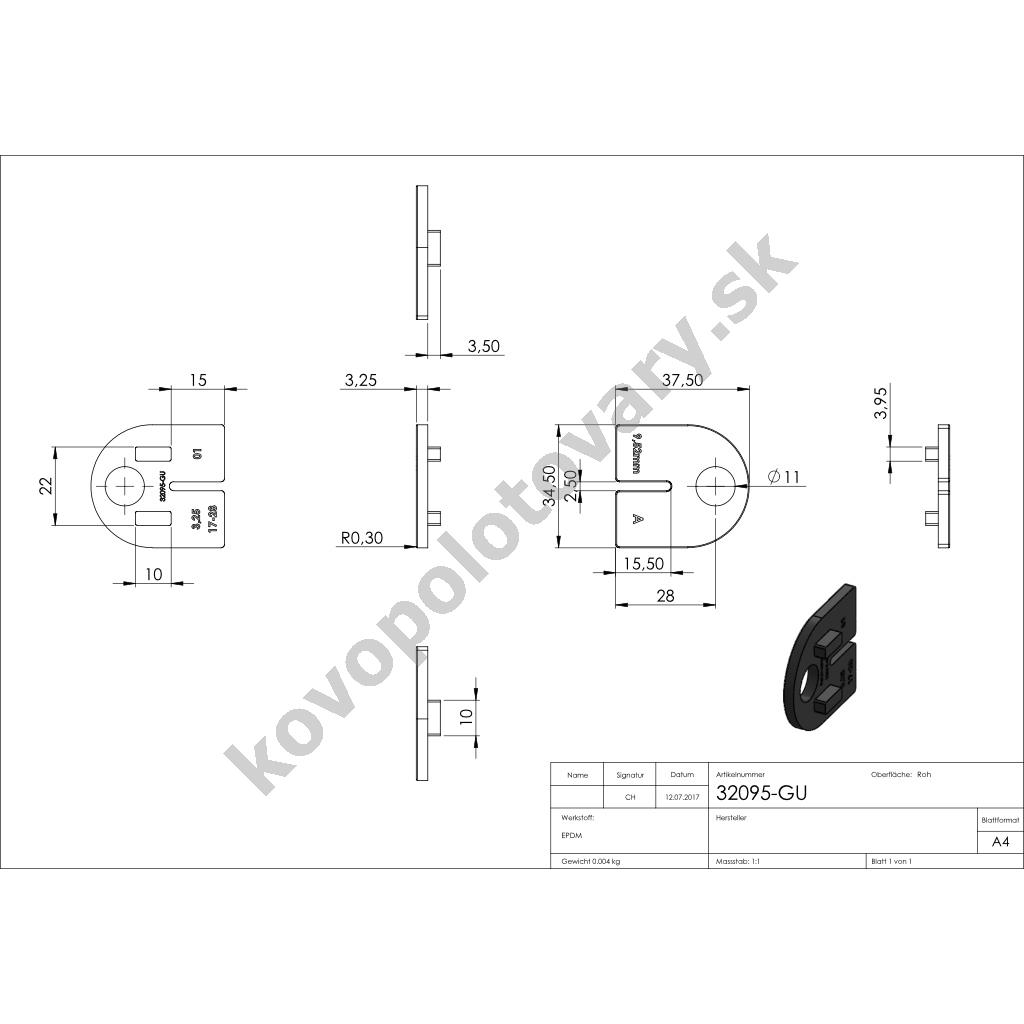 3201-GU - tesnenie do držiaka skla a plechu - model 32 a 12, pre plech 1,5 mm, pre zábradlie a schodisko
