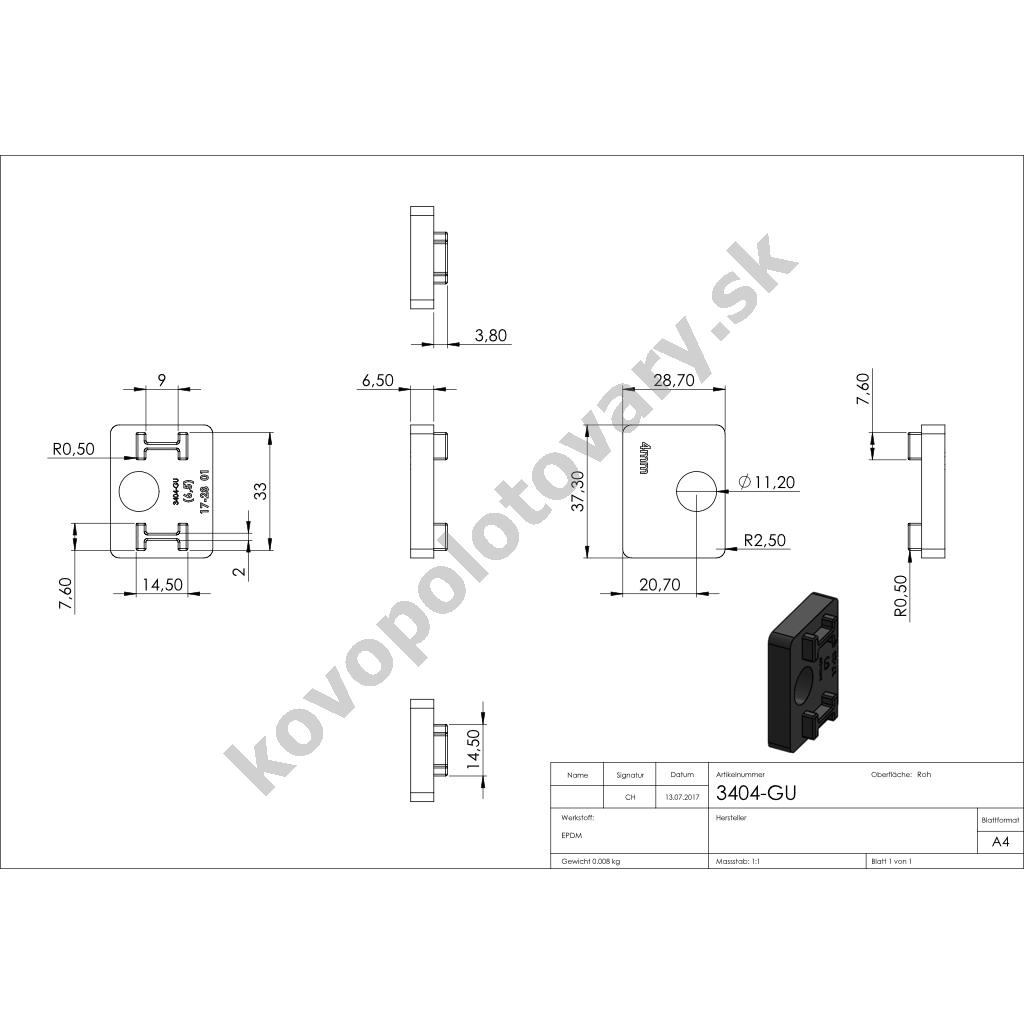 3404-GU - tesnenie do držiaka skla a plechu - model 34, 26, 24 a 14, pre plech 4 mm, pre zábradlie a schodisko