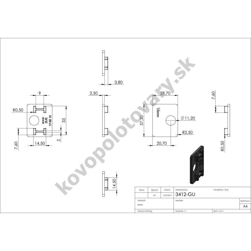 3403-GU - tesnenie do držiaka skla a plechu - model 34, 26, 24 a 14, pre plech 3 mm, pre zábradlie a schodisko