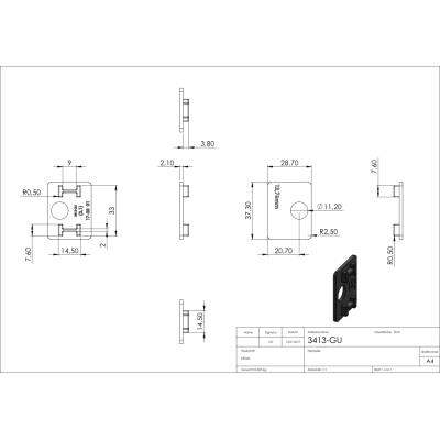Hloubka: 32,5; Materiál: ZAMAK; Model: 34; Povrchová úprava: bez úpravy; Pro tloušťku výplně: 1,5; 10; 10,76; 11,52; 12; 12,76; 2; 3; 4; 8; 8,76; 9,52; Šířka: 52; Tvar držáku: hranatý; Typ závitu: M8; Uchycení: na rovinu; Výška: 52; Zajišťovací čep: volitelné; Zajišťovací podpěra: volitelné;