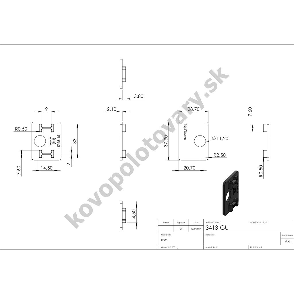 3403-GU - tesnenie do držiaka skla a plechu - model 34, 26, 24 a 14, pre plech 3 mm, pre zábradlie a schodisko