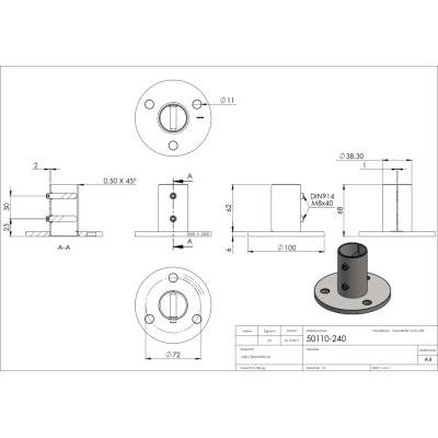 50110-240 Nerezová kotviaca príruba s upínacími skrutkami použiteľná ako základňa stĺpiku alebo ukotvenie konca...