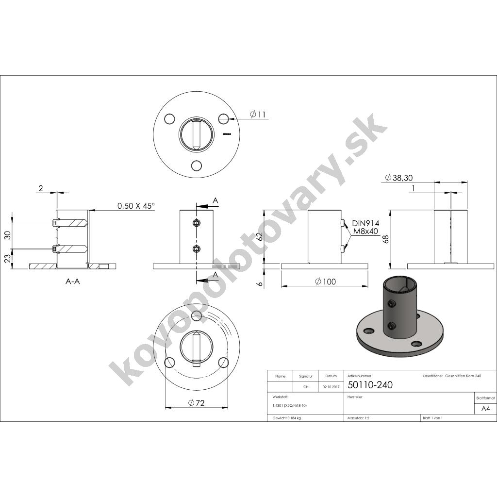 50110-240 - nerezová kotviaca príruba pre rúrku pr. 42,4 mm, vrchná i bočná, upínacia, pre nerezové zábradlie