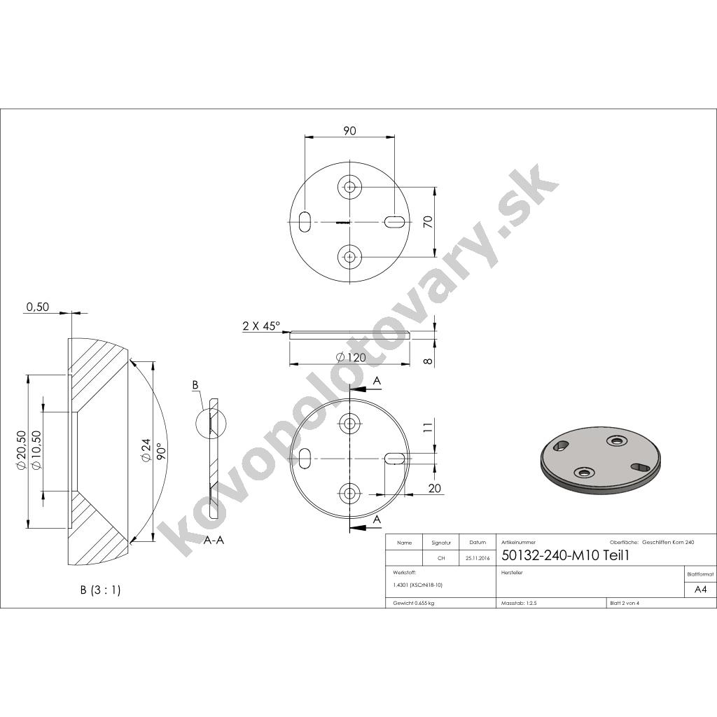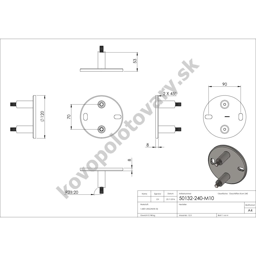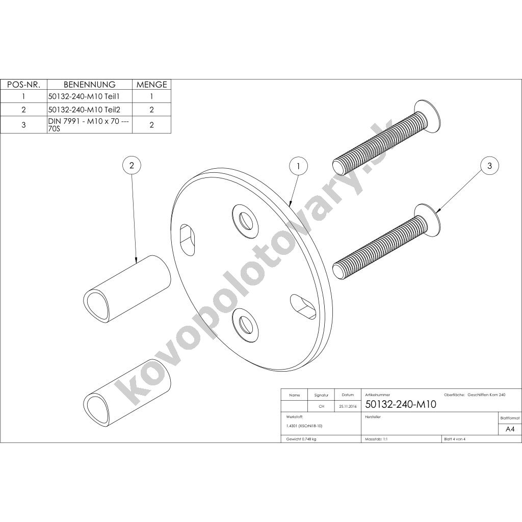 50132-240-M10 Nerezová kotviaca príruba pre stĺpik zábradlia. Určené pre vnútorné i vonkajšie použitie v systémoch...
