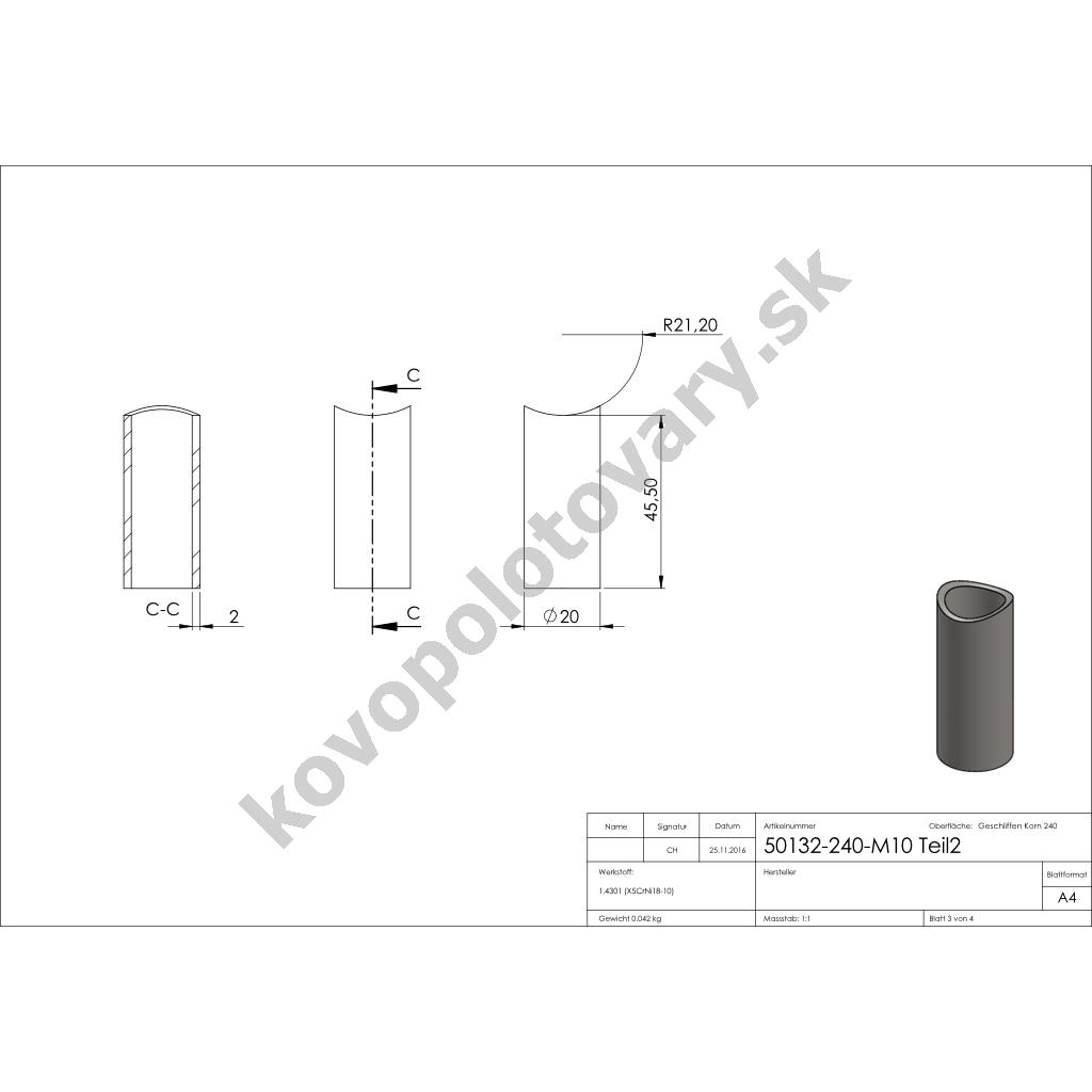 50132-240-M10 - nerezová kotviaca príruba pre rúrku pr. 42,4 mm, bočná, pre nerezové zábradlie