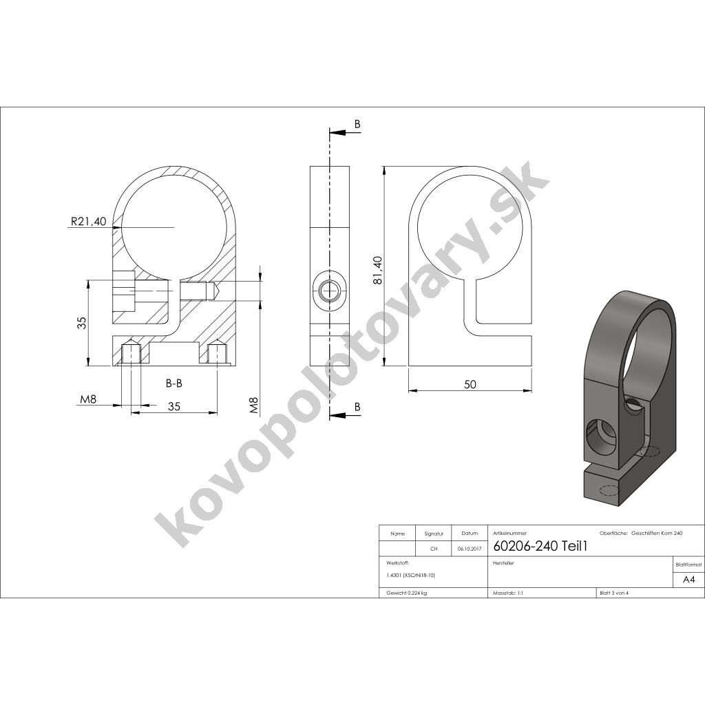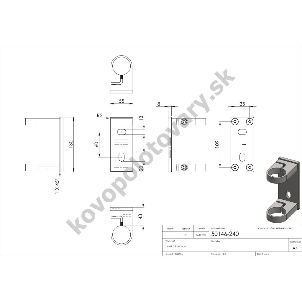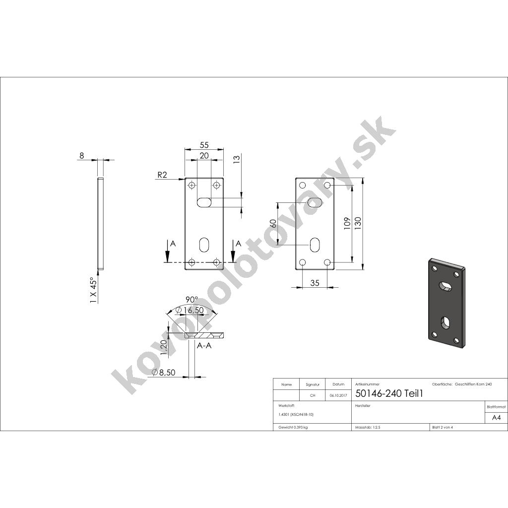 50146-240 - nerezová kotviaca príruba pre rúrku pr. 42,4 mm, bočná, pre nerezové zábradlie