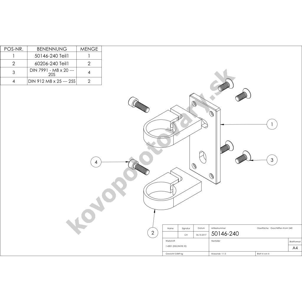 50146-240 Nerezová kotviaca príruba pre stĺpik zábradlia. Určené pre vnútorné i vonkajšie použitie v systémoch...
