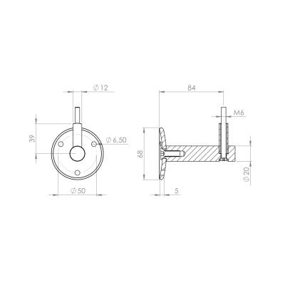 Pevný priamy nerezový držiak oceľového madla. Určené pre vnútorné i vonkajšie použitie v systémoch stavebnicového montovaného nerezového zábradlia a schodísk.
