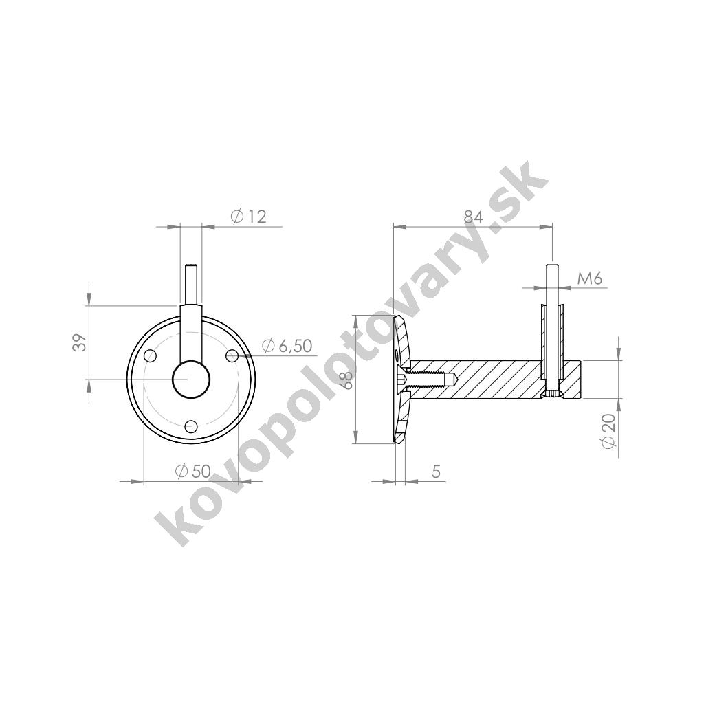 • 1x Skrutka M6x70 pre upevnenie madlá k držiaku