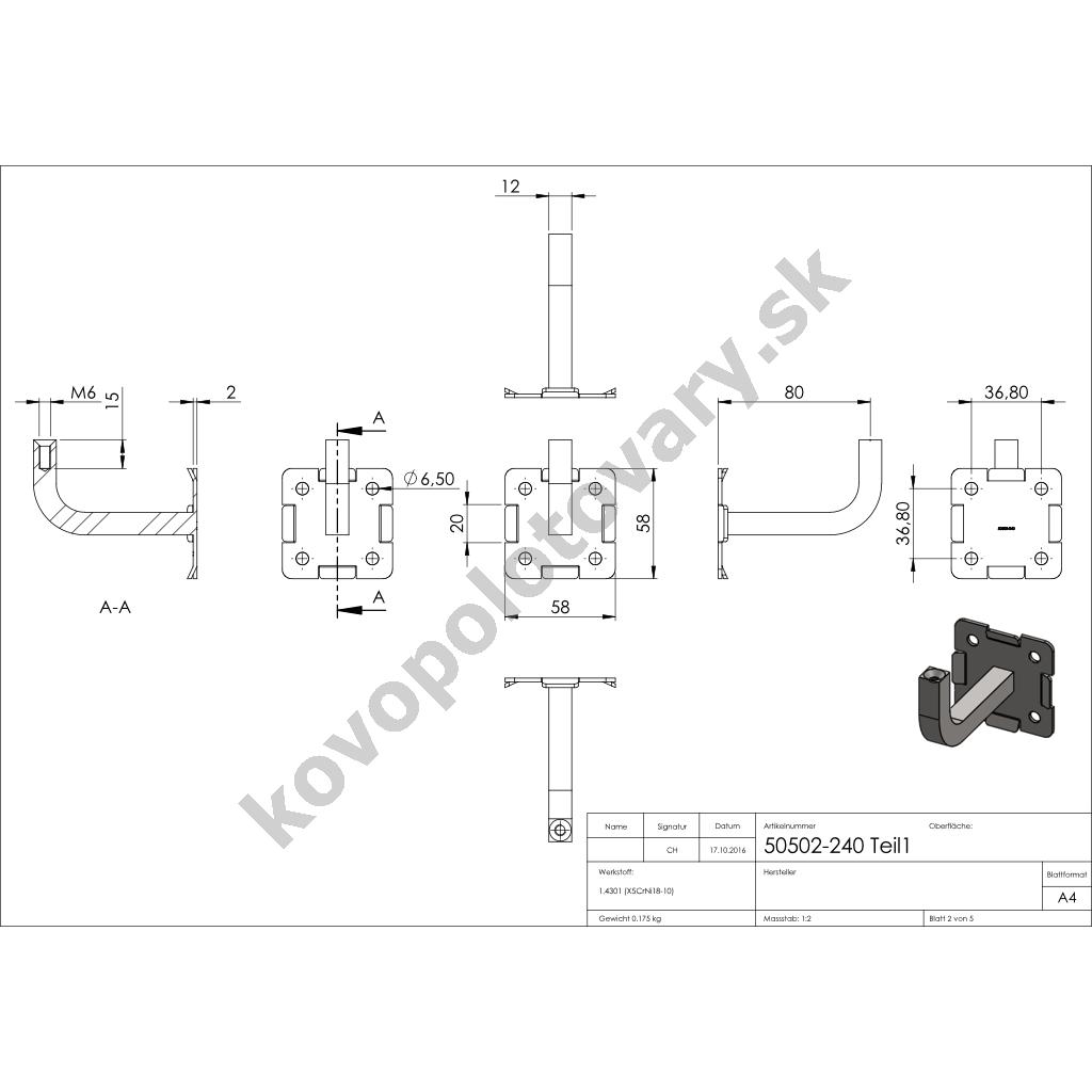 | Trieda ocele | AISI 304 (A2) |