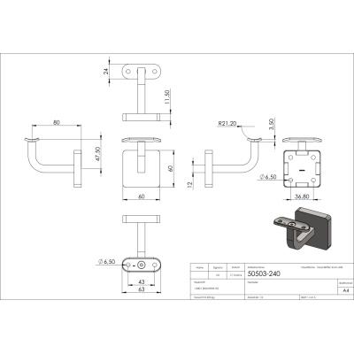 50503-240 - nerezový držák madla pr. 42,4 mm, na zeď, s krycí rozetou, pro nerezové zábradlí