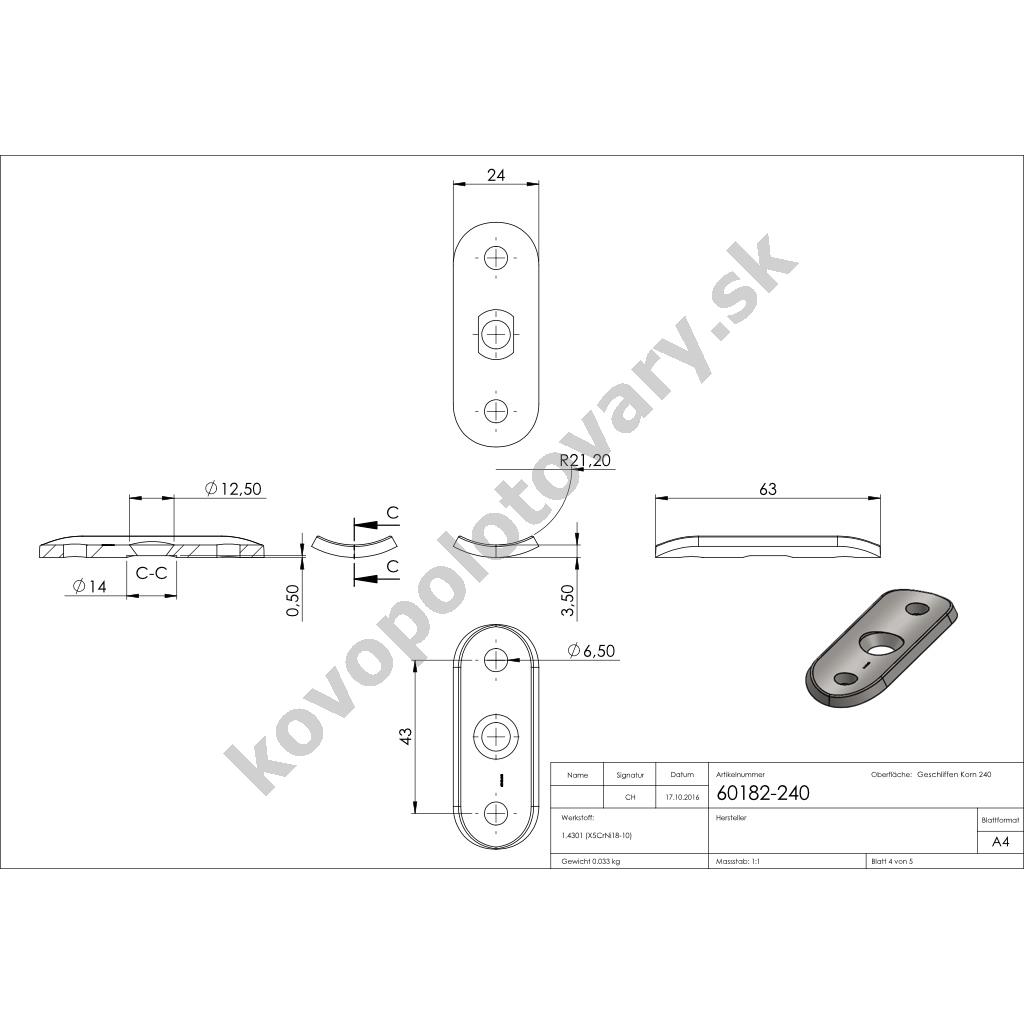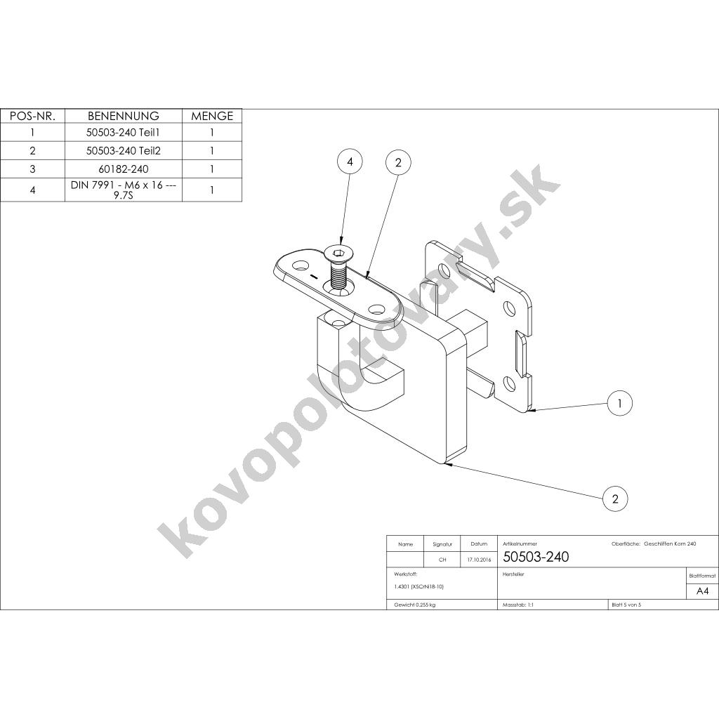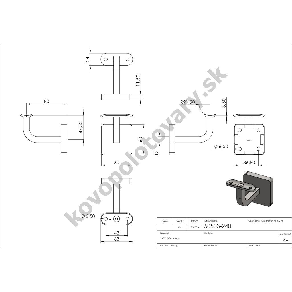 50503-240 - nerezový držiak madla pr. 42,4 mm, na stenu, s krycou rozetou, pre nerezové zábradlie