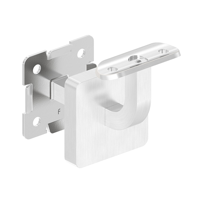 Pevný priamy nerezový držiak madla, s krycou rozetou. Určené pre vnútorné i vonkajšie použitie v systémoch stavebnicového montovaného nerezového zábradlia a schodísk.