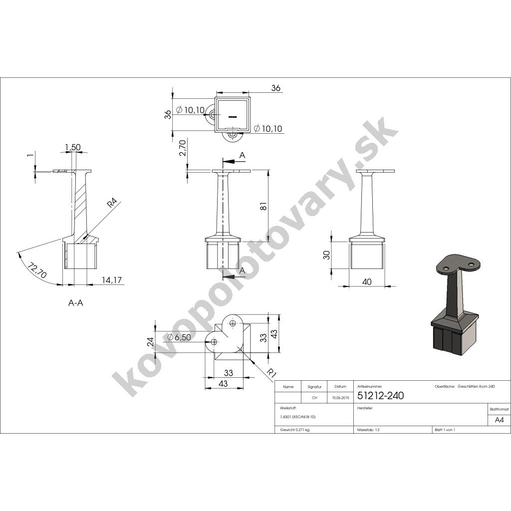 | Povrchová úprava | mat / brus K240 |