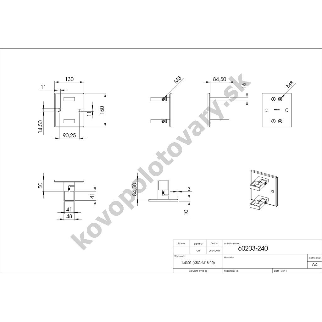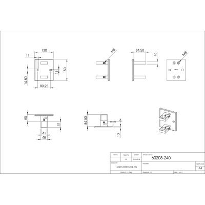60203-240 - nerezová kotviaca príruba pre jekl pr. 40x40 mm, bočná, pre nerezové zábradlie