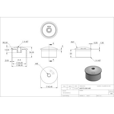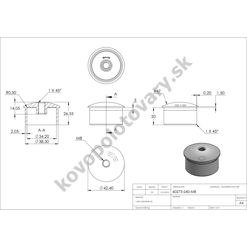 Materiál: ocel nerezová; Povrchová úprava: mat / brus K240; Pro průměr / průřez: 42,4; Třída oceli: AISI 304 (A2); Tvar profilu: O; Vlastnosti: pro nerez; vypouklé;