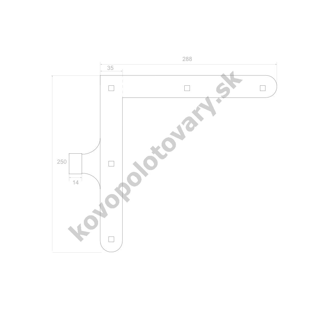 Materiál: ocel; Povrchová úprava: barveno; Pro průměr čepu: 14; Šířka: 288; Šířka pásoviny: 35; Tloušťka: 4,5; Výrobce: PSG; Výška: 250;