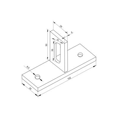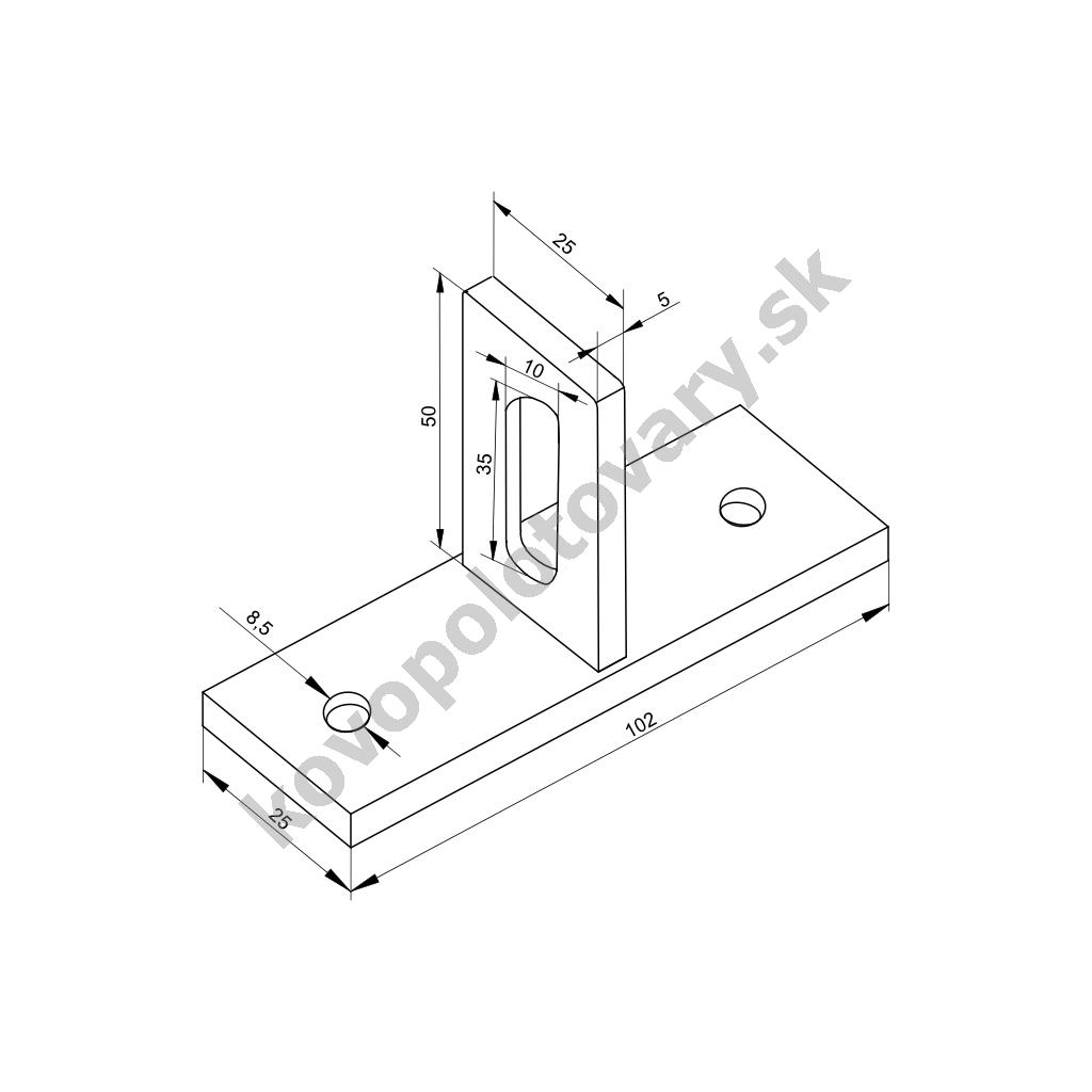 64.005 - Kotvenie plota - horizontálne vodorovné 102x25 mm, držiak pre kotvenie plotu