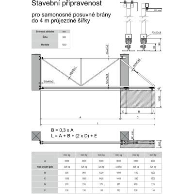 Délka balíku: 560; Max. váha brány (kg): 325; Pro šířku průjezdu: do 4 m; Prodejní délka: 5,6; Typ setu: set s pohonem; Výrobce pohonu: Nice;