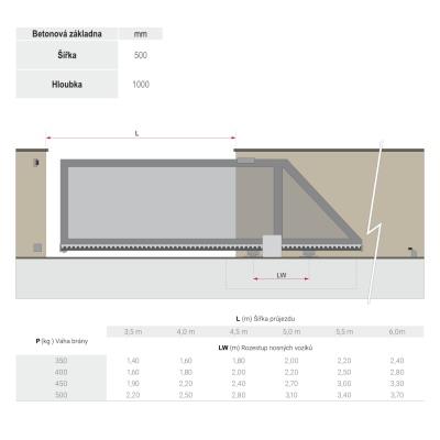 Délka balíku: 600; Max. váha brány (kg): 400; Pro šířku průjezdu: do 4 m; Prodejní délka: 6; Typ setu: set s pohonem; Výrobce pohonu: Nice;