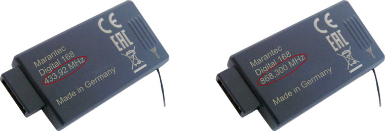 Pre správny výber diaľkového ovládača Marantec alebo prijímača Marantec je potrebné vedieť frekvenciu a typ kódu prijímača v pohone alebo vášho súčasného ovládača Marantec. Určujeme 2 typy frekvencií 868 alebo 433 MHz a 2 typy kódu– Multi-Bit alebo bi-linked.