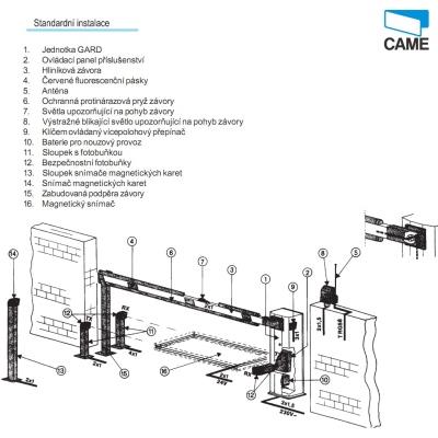 Jedná sa o najpoužívanejší typ cestné závory určené pre intenzívnu a rýchlu prevádzku. Tento pohonový set závory je vhodný pre šírku prejazdu do 6 m Súčasťou pohonu závory je zabudovaná riadiaca jednotka s rádiovým prijímačom. Všetky závory serie CAME GARD sú prispôsobené k zapojeniu širokej škály bezpečnostných a ovládacích prvkov (semafory, turnikety atď.)