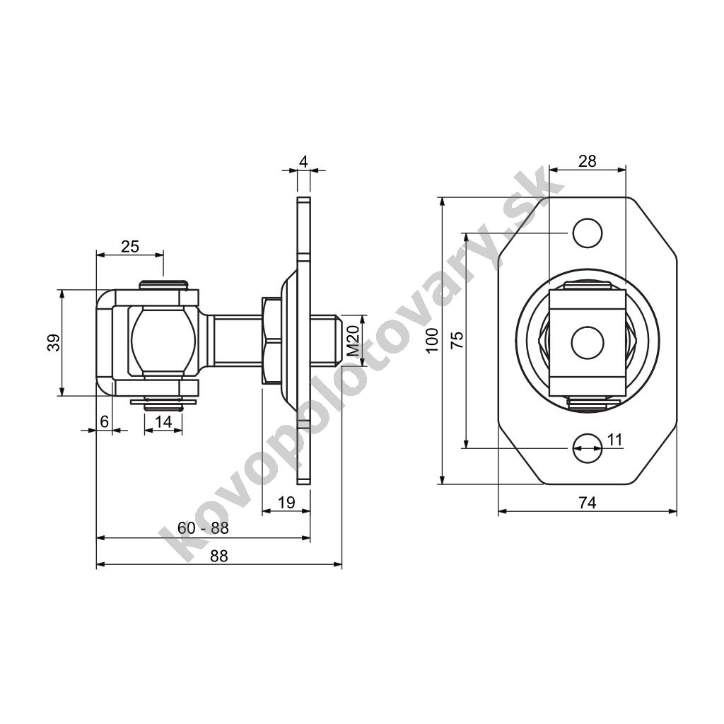 Materiál: ocel; Nosnost pantu (kg): 72,5; Použití: k přišroubování; na betonové sloupky; Typ závitu: M20; Výrobce: CAIS;
