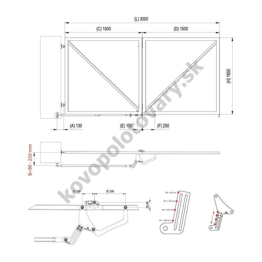 Délka balíku: 105; Materiál: ocel; Max. délka křídla: 3; Povrchová úprava: galvanické pozinkování; Pro šířku průjezdu: do 6 m; Výrobce: CAIS;