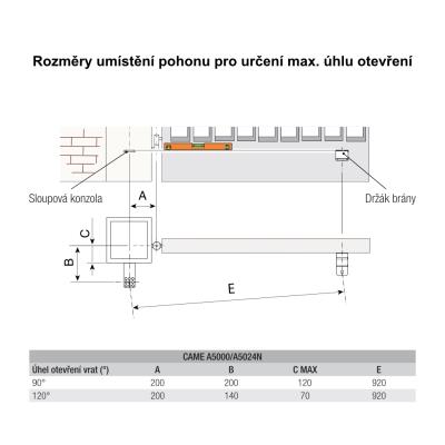 Délka balíku: 110; Max. délka křídla: 5; Pro počet křídel: 2; Pro šířku průjezdu: do 10 m; Typ setu: set s pohonem; Výrobce: Came;