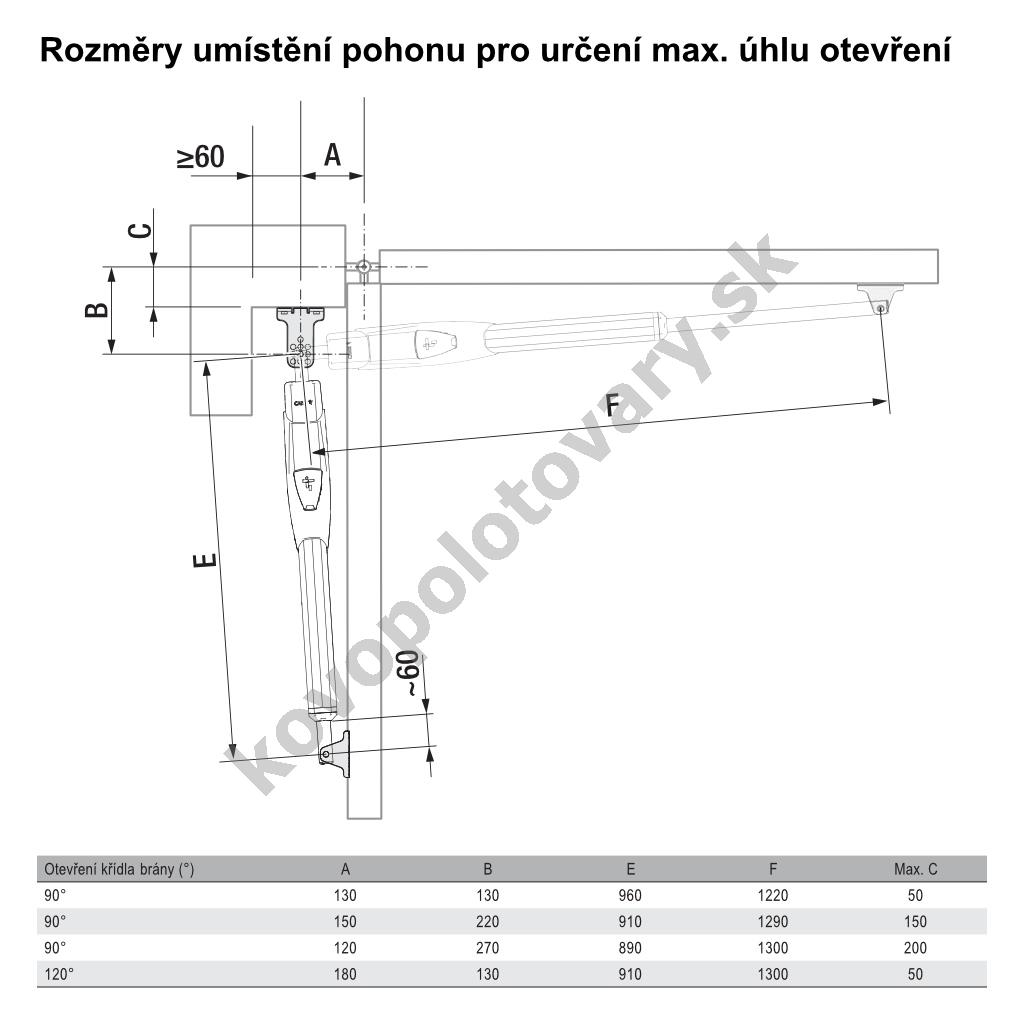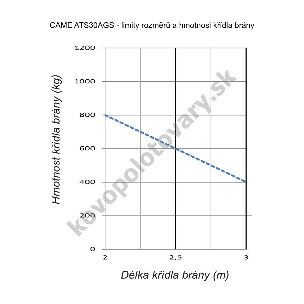 Délka balíku: 105; Max. délka křídla: 3; Pro počet křídel: 1; Pro šířku průjezdu: do 3 m; Typ setu: pouze pohon; Výrobce: Came;