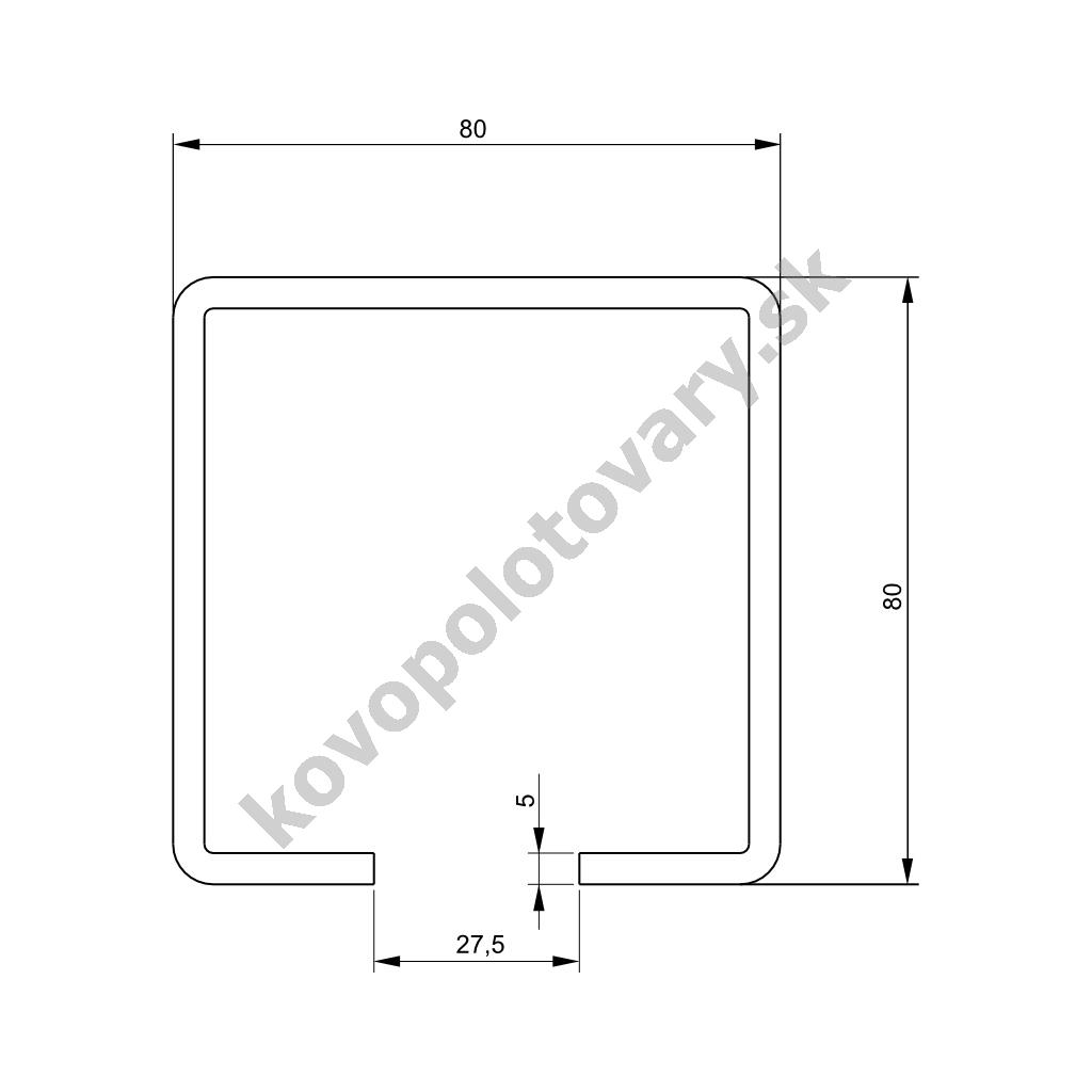 - 1x PSG 60.080_6m - vodiaci C profil 80x80 mm, bez povrchovej úpravy (čierny)