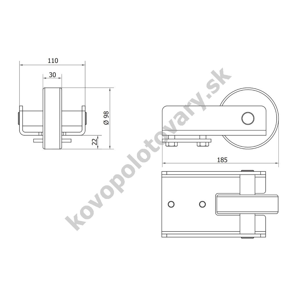Dojazdové koliesko posuvné brány RUN-L veľké, pre vodiaci profil pr. 138x144 mm STAGE-LZ