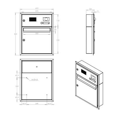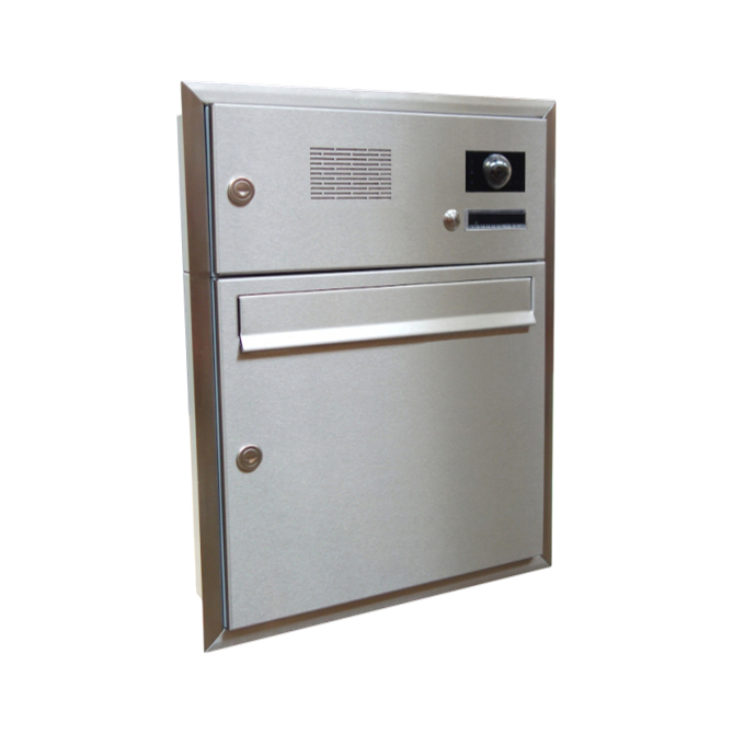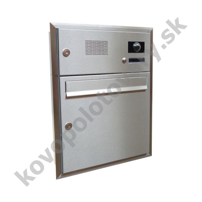 Barva schránky: Nerez; Hloubka schránky: 100; Jmenovka: Ano; Kamera: Ne; Komunikátor: Ano; Materiál: ocel; ocel nerezová; Montáž: zabudování; Povrchová úprava: barveno; mat / brus K240; pozinkováno; Rozměr čelní desky: 410 x 480; Šířka schránky: 370; Venkovní použití: Ano; Vhoz zásilek: vpředu; Výběr zásilek: vpředu; Výrobce: DOLS; Výška schránky: 440; Zvonkové tlačítko: Ano;
