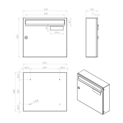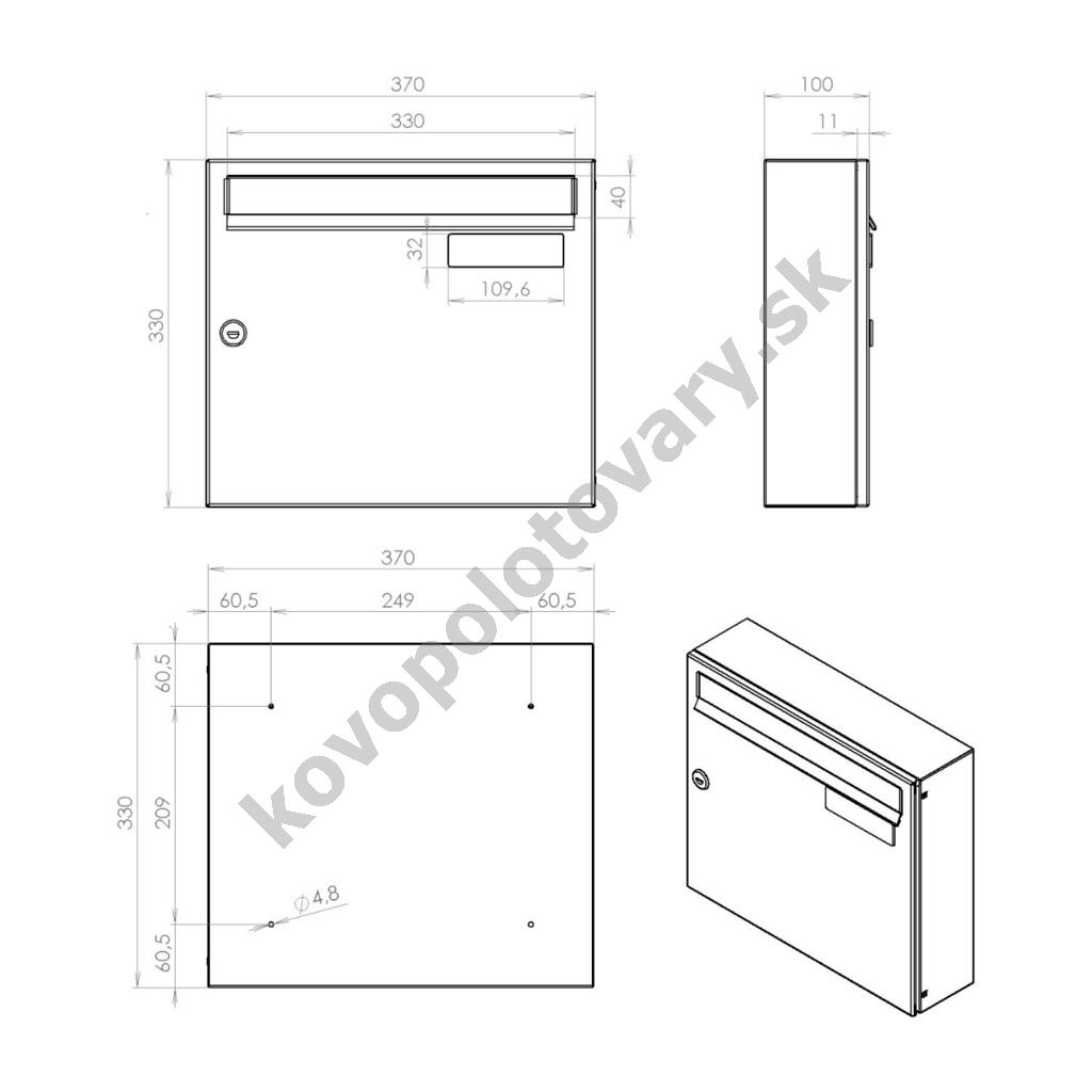 Barva schránky: Nerez; Hloubka schránky: 100; Jmenovka: Ano; Kamera: Ne; Komunikátor: Ne; Materiál: ocel; ocel nerezová; Montáž: zabudování; Povrchová úprava: barveno; mat / brus K240; pozinkováno; Rozměr čelní desky: 410 x 370; Šířka schránky: 370; Venkovní použití: Ano; Vhoz zásilek: vpředu; Výběr zásilek: vpředu; Výrobce: DOLS; Výška schránky: 330; Zvonkové tlačítko: Ne;