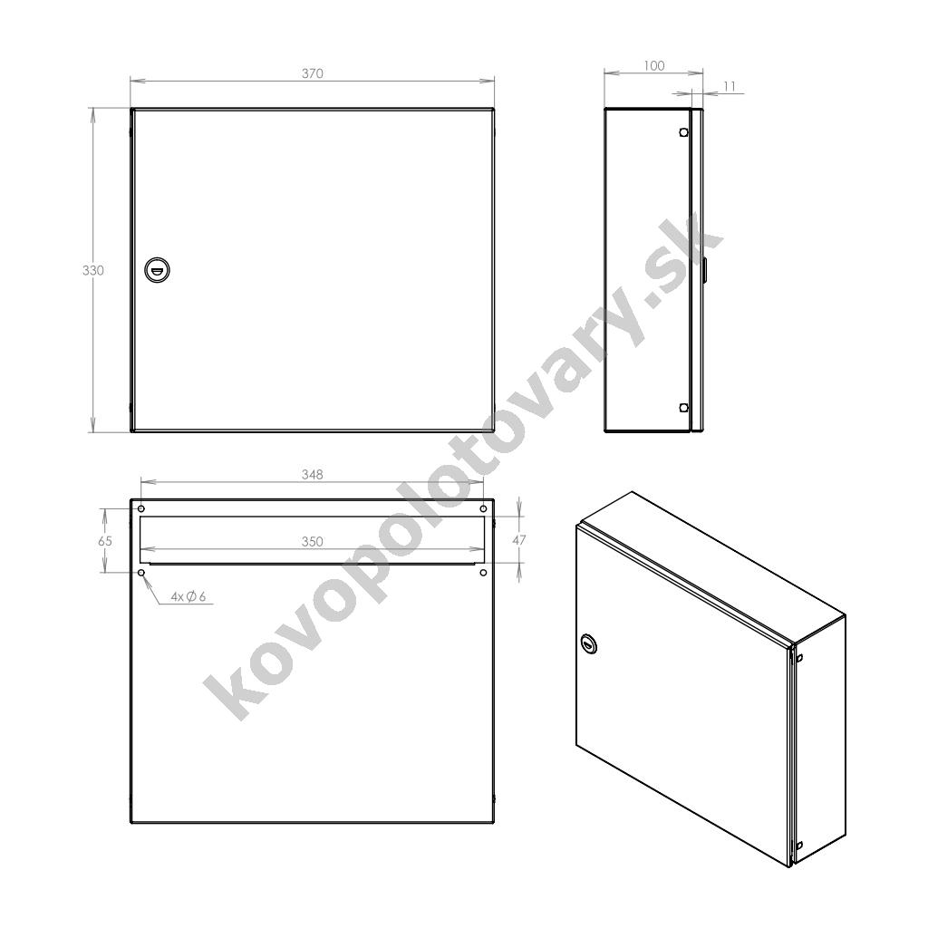 Barva: šedá; Hloubka schránky: 100; Materiál: ocel; Montáž: sendvičová; Povrchová úprava: barveno; pozinkováno; Šířka schránky: 370; Venkovní použití: Ano; Vhoz zásilek: vpředu; Výběr zásilek: vzadu; Výrobce: DOLS; Výška schránky: 330;