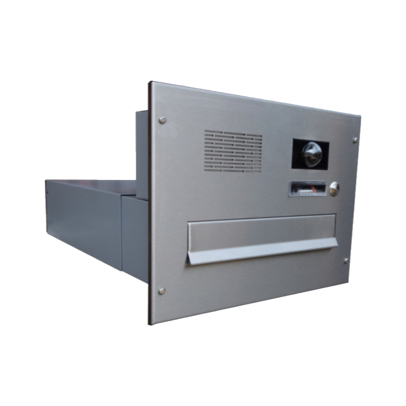 Barva schránky: Nerez; Hloubka schránky: 400 - 630; Jmenovka: Ano; Kamera: Ne; Komunikátor: Ano; Materiál: ocel; ocel nerezová; Montáž: zabudování; Povrchová úprava: barveno; mat / brus K240; pozinkováno; Rozměr čelní desky: 350 x 270; Šířka schránky: 300; Venkovní použití: Ano; Vhoz zásilek: vpředu; Výběr zásilek: vzadu; Výrobce: DOLS; Výška schránky: 220; Zvonkové tlačítko: Ano;