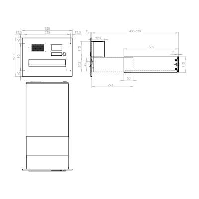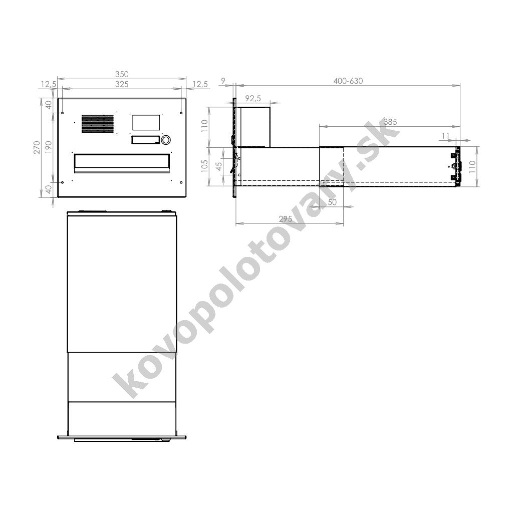 Barva schránky: Nerez; Hloubka schránky: 400 - 630; Jmenovka: Ne; Kamera: Ne; Komunikátor: Ne; Materiál: ocel; ocel nerezová; Montáž: zabudování; Povrchová úprava: barveno; mat / brus K240; pozinkováno; Rozměr čelní desky: 350 x 160; Šířka schránky: 300; Venkovní použití: Ano; Vhoz zásilek: vpředu; Výběr zásilek: vzadu; Výrobce: DOLS; Výška schránky: 110; Zvonkové tlačítko: Ne;