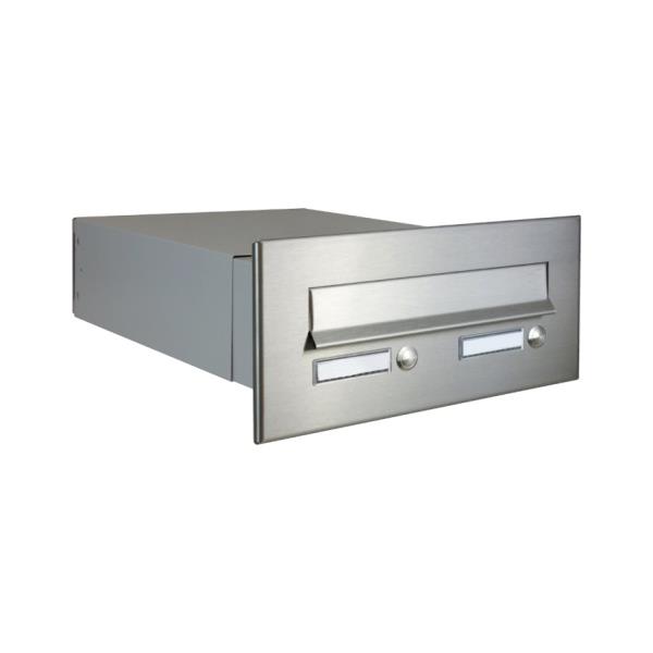 Barva schránky: Nerez; Hloubka schránky: 400 - 630; Jmenovka: Ano; Kamera: Ne; Komunikátor: Ne; Materiál: ocel; ocel nerezová; Montáž: zabudování; Počet schránek v sestavě: 2; Povrchová úprava: barveno; mat / brus K240; pozinkováno; Rozměr čelní desky: 350 x 270; Šířka schránky: 300; Venkovní použití: Ano; Vhoz zásilek: vpředu; Výběr zásilek: vzadu; Výrobce: DOLS; Výška schránky: 220; Zvonkové tlačítko: Ne;
